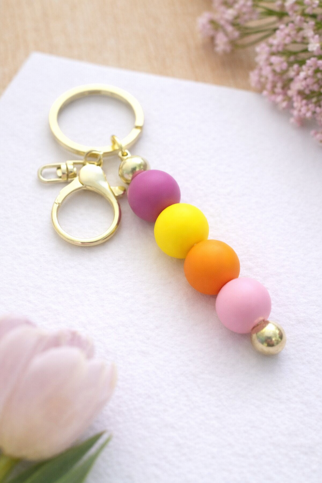Bunter Schlüsselanhänger mit Goldring Und Silikon Perlen