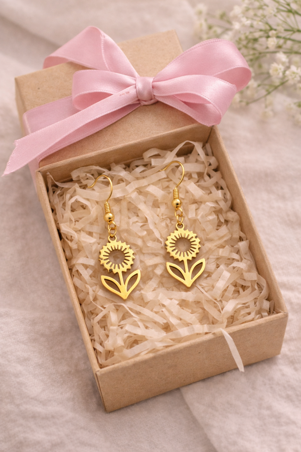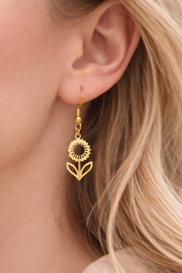 Sonnenblumen Ohrringe Gold – Blumen Ohrhänger – Minimalistisch & Elegant