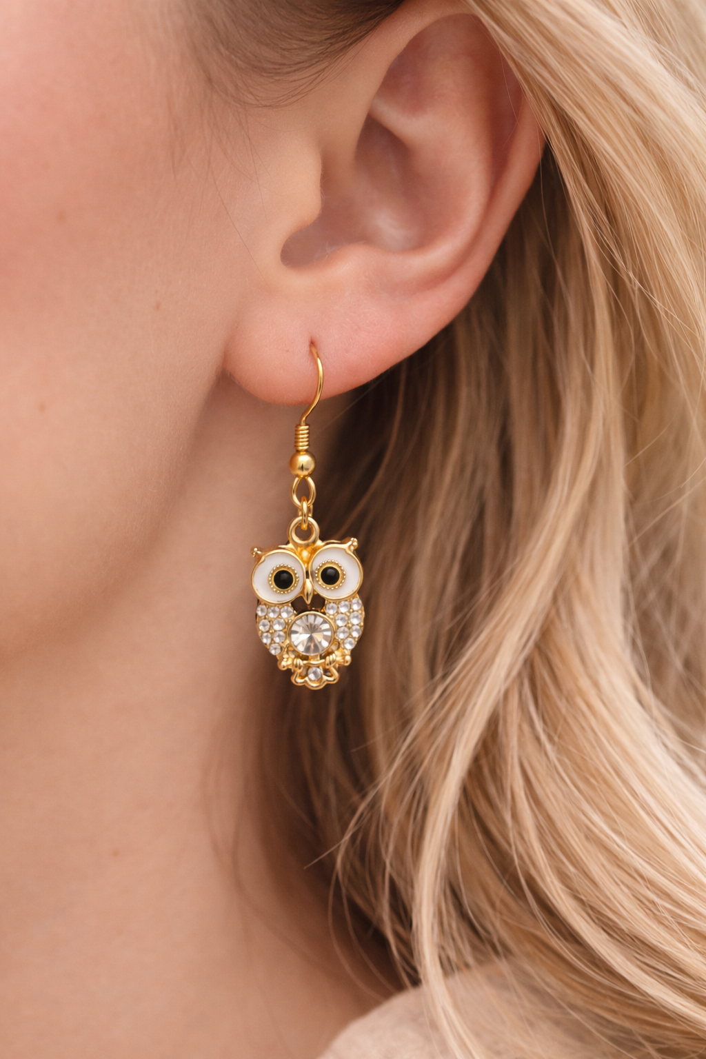 Eulen Ohrringe in Gold-Optik mit Strass – süße Ohrhänger
